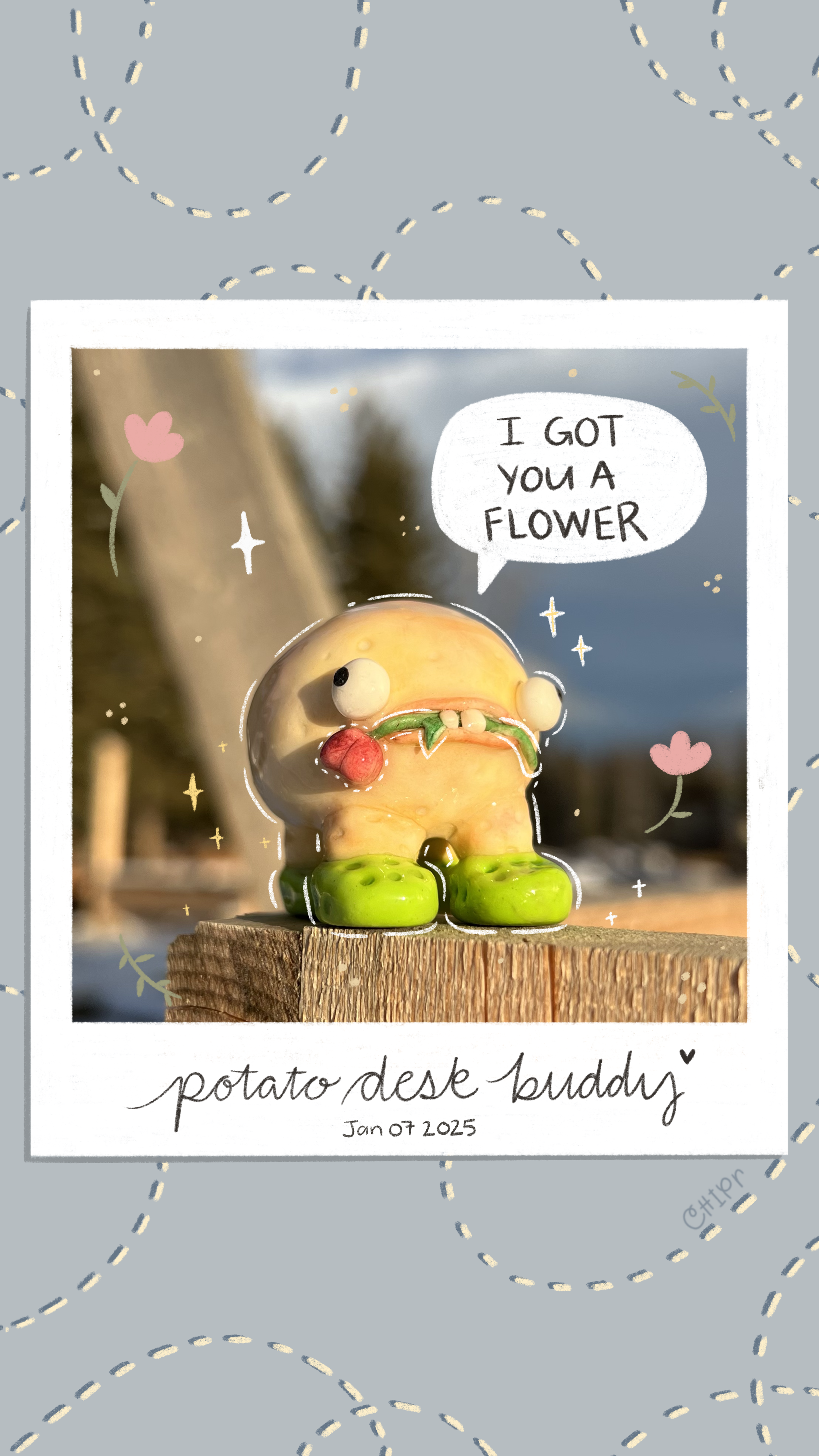TAGS: Handmade figurines, desk buddy, desk buddies, funny food sculpture, food lover, artwork, polymer clay art, gift ideas for her, fun accessories, flower