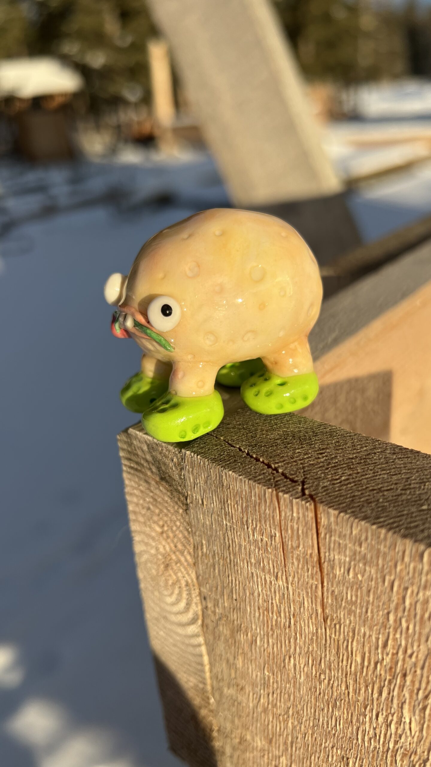 Unique handmade clay creation- Buck-toothed potato wearing crocs
