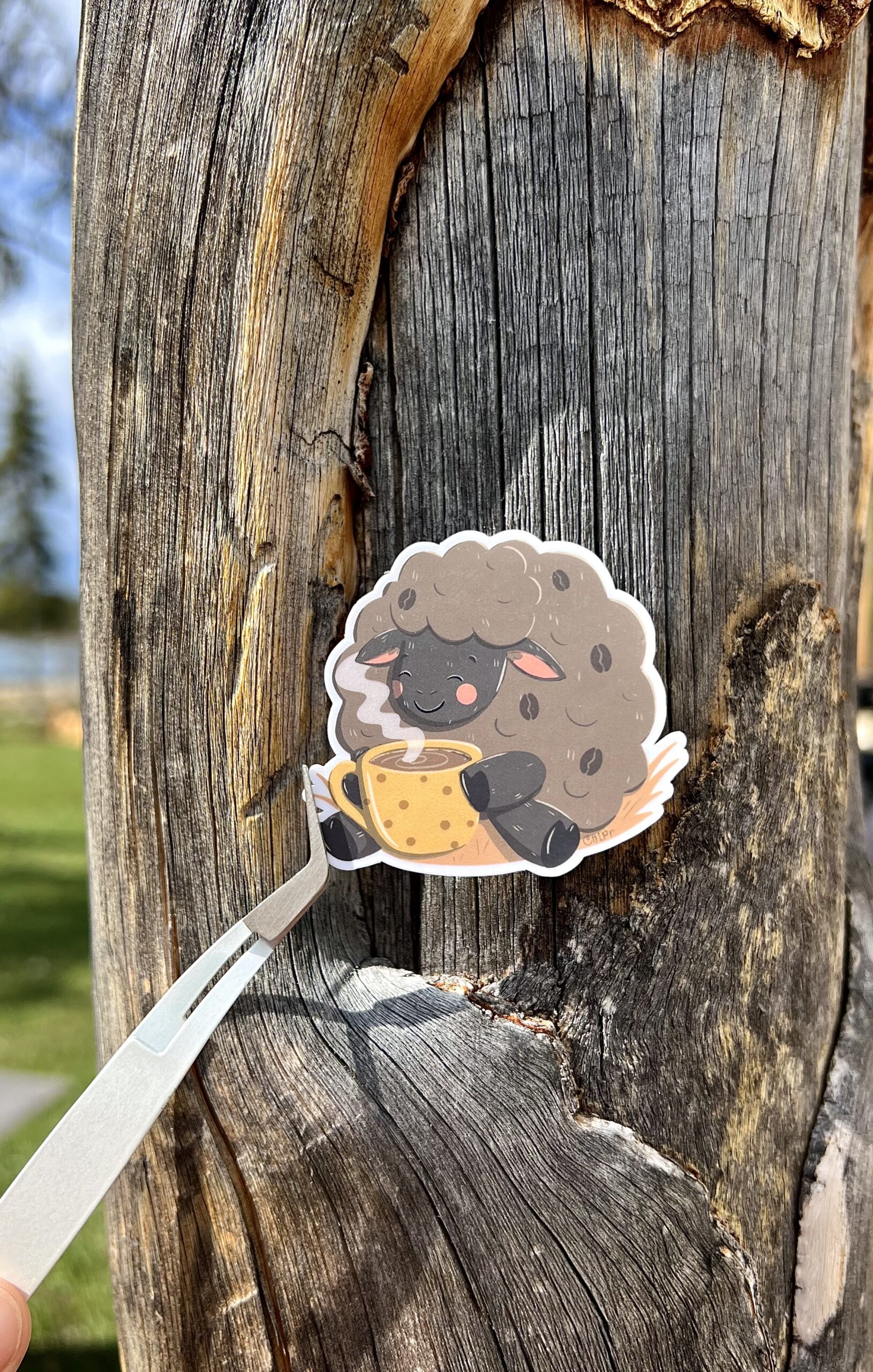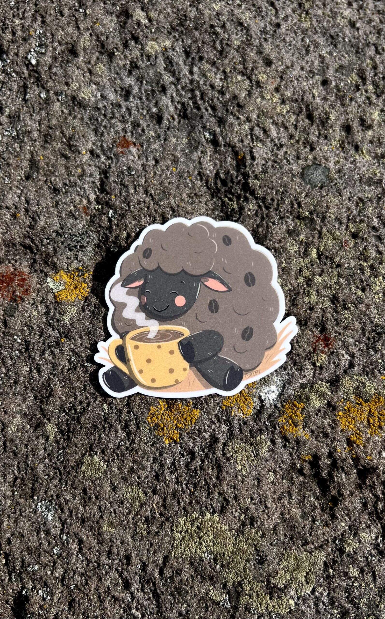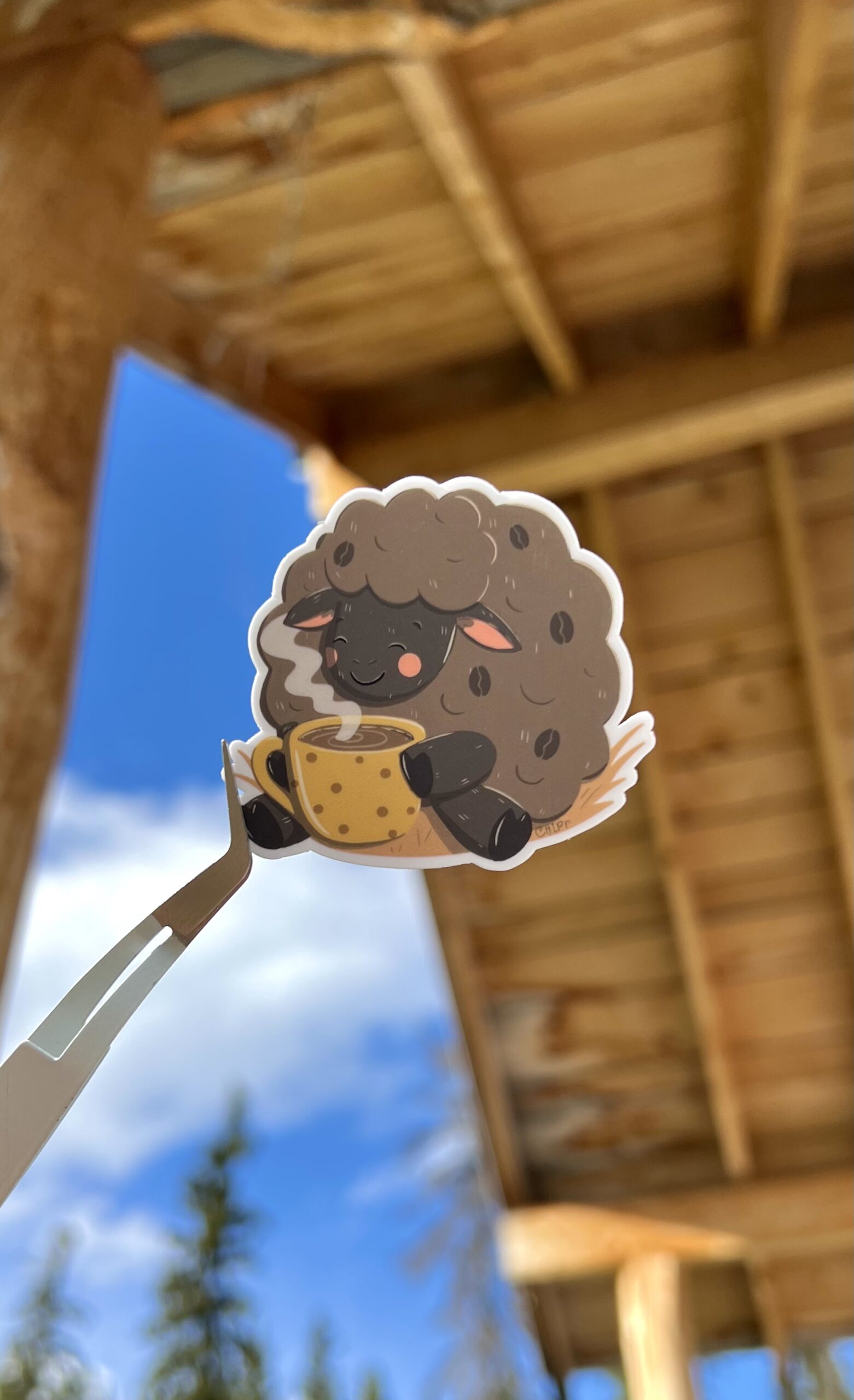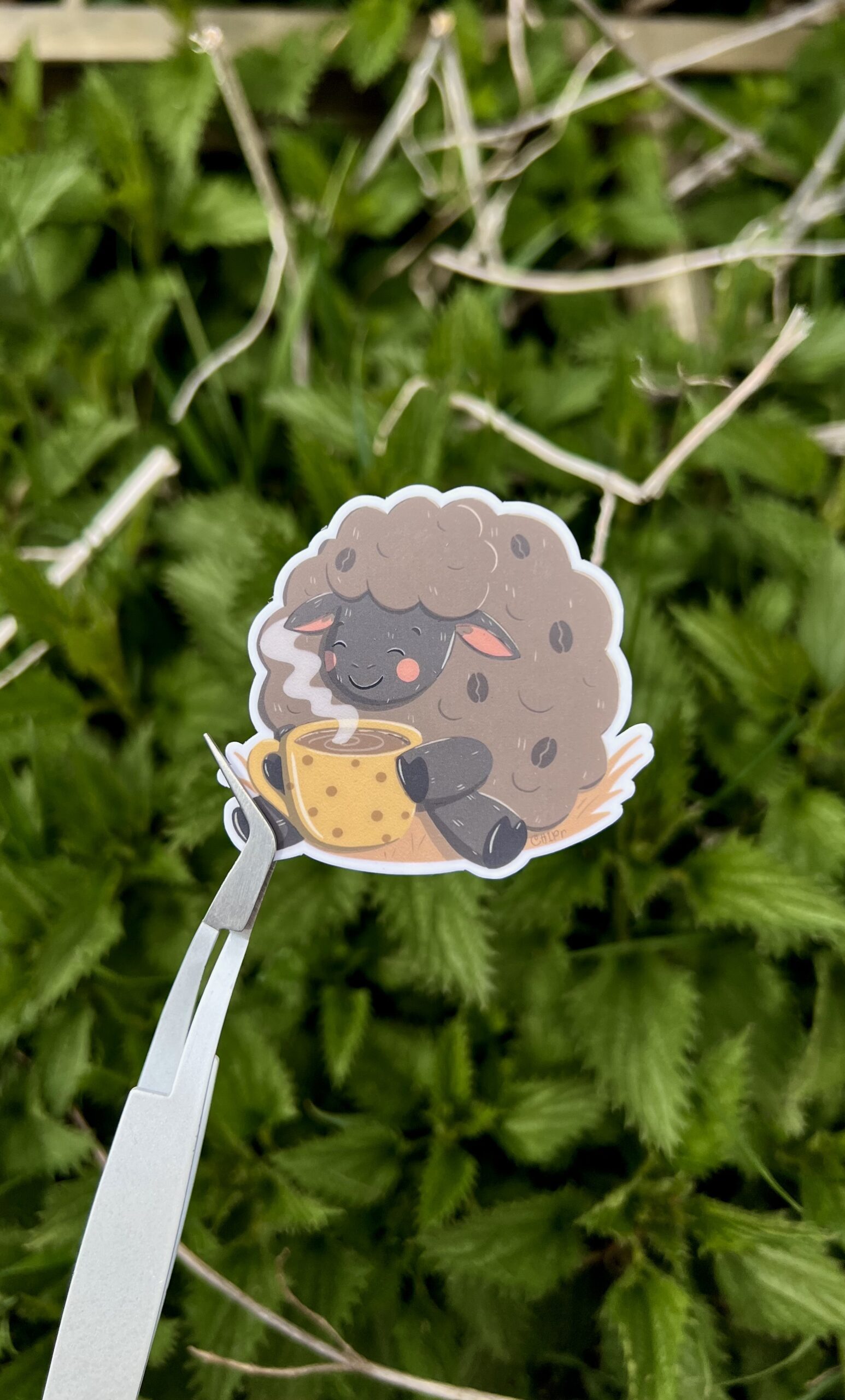 Cute Vinyl Sheep drinking coffee sticker!