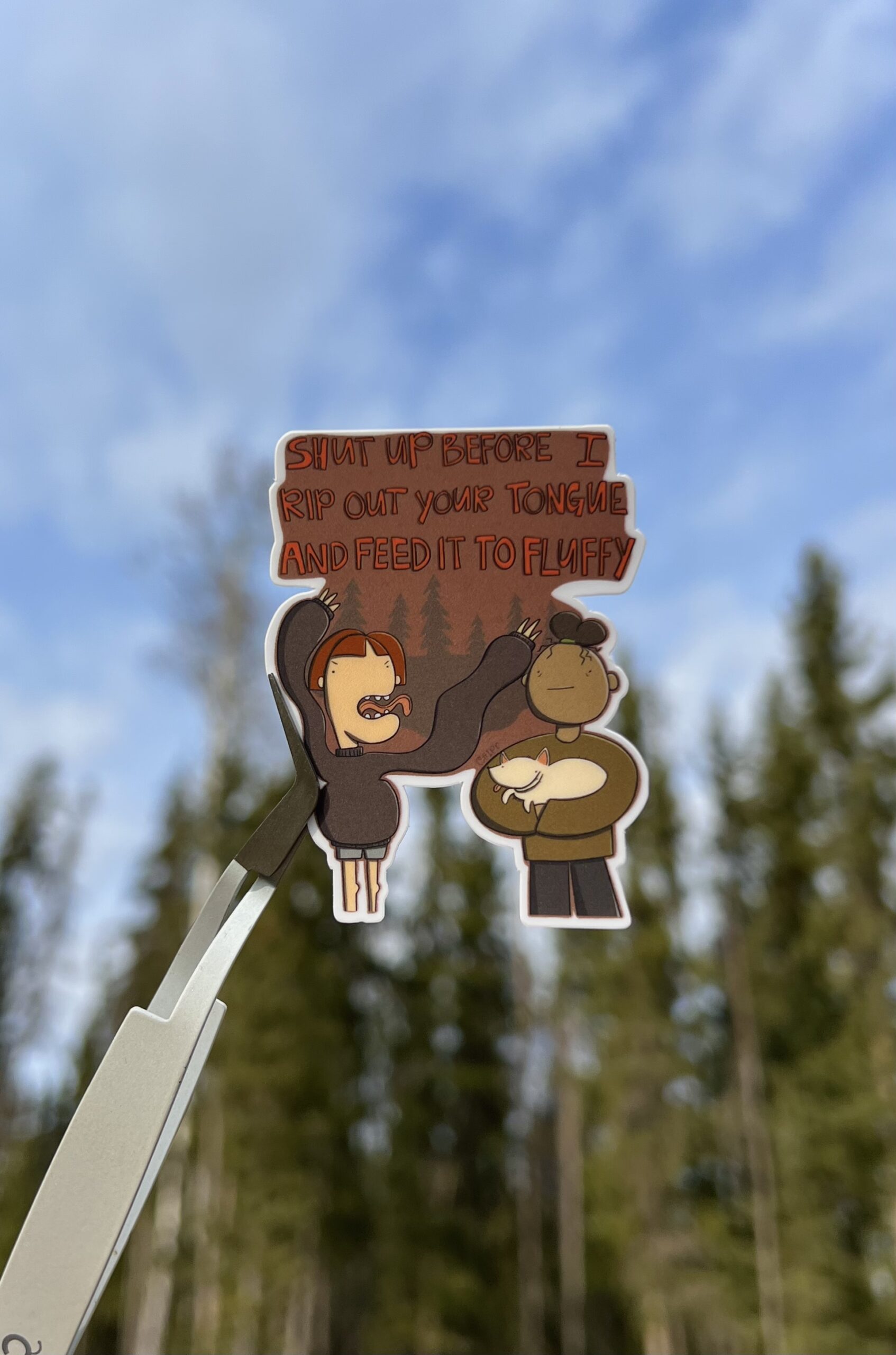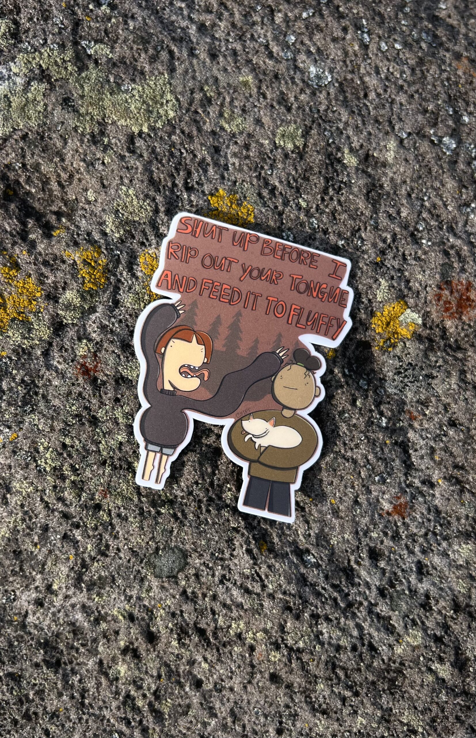 “Shut up before I rip out your tongue and feed it to fluffy” Sticker For Introverts